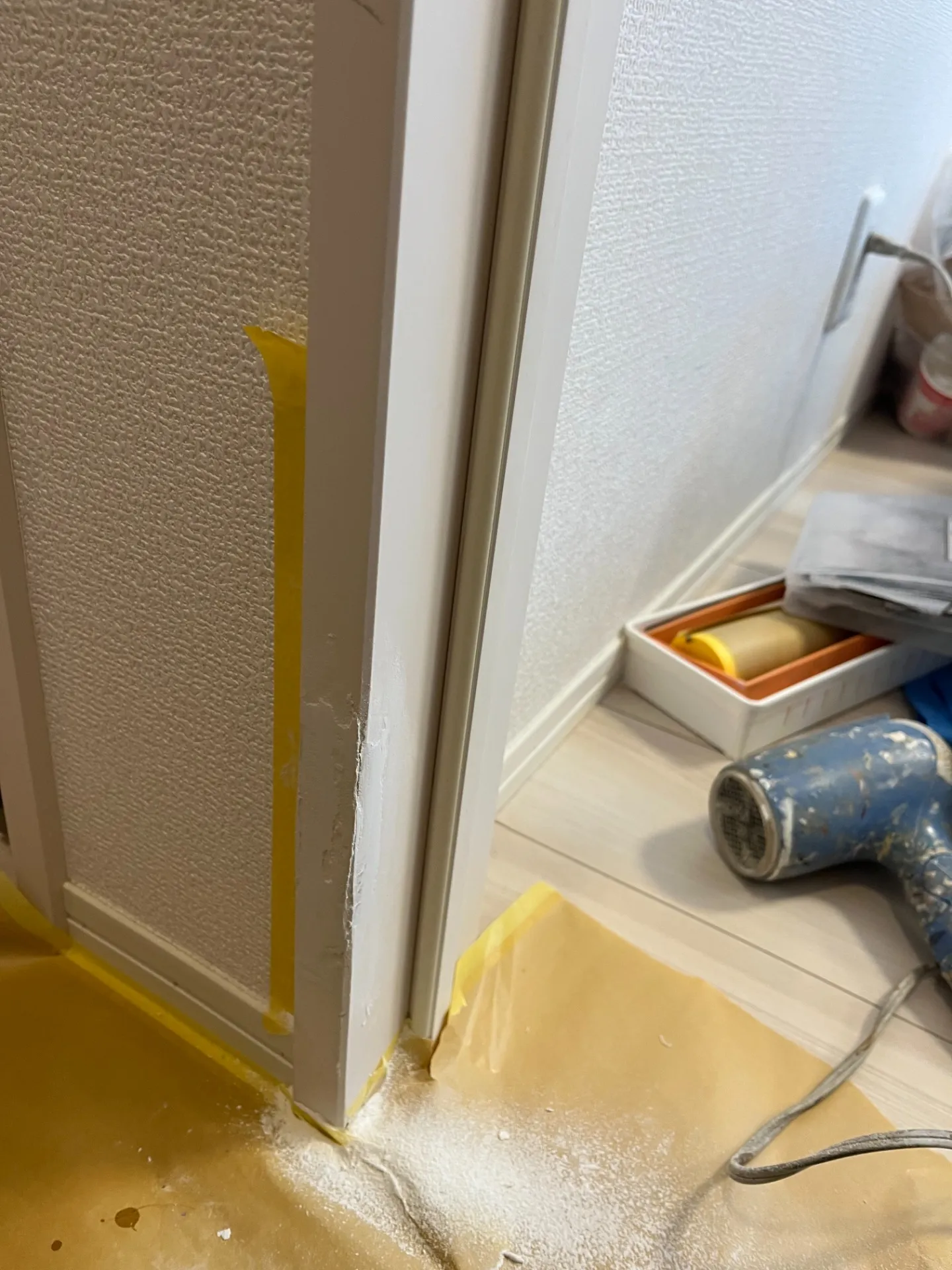 ドア枠の剥がれ補修を東京都足立区まで出張施工しました。