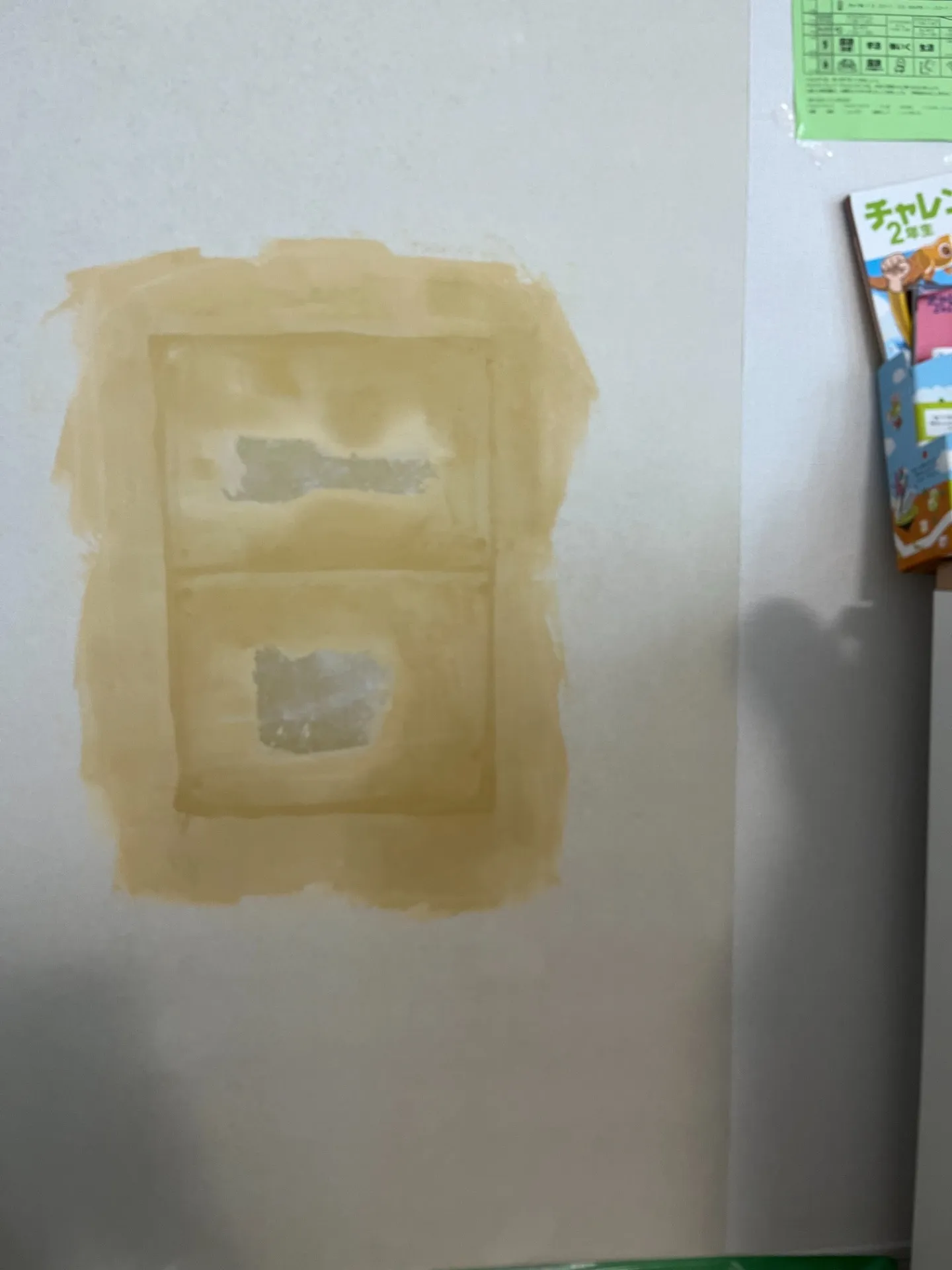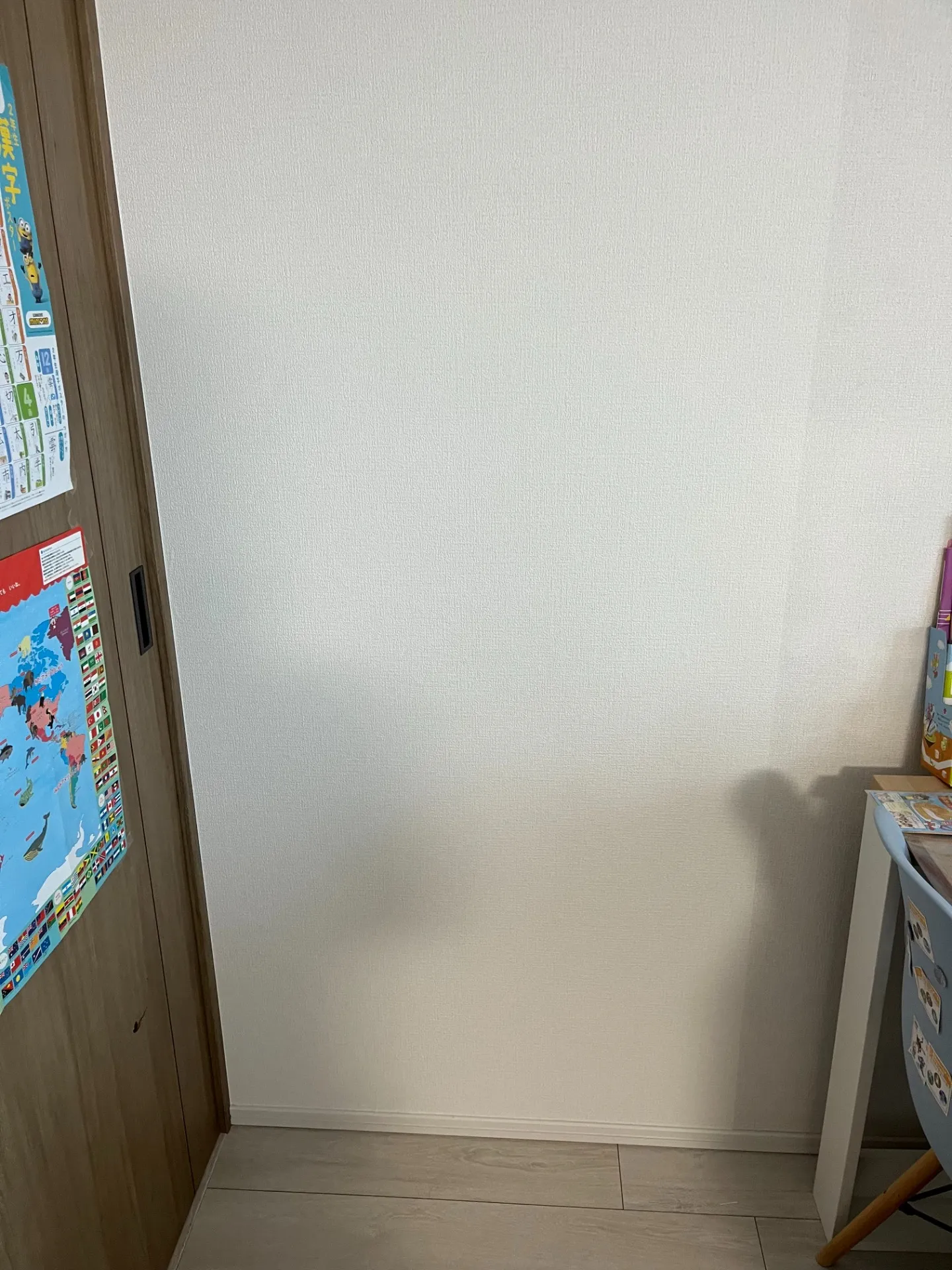 同じ壁紙は廃版になっているため、似た物を一枚分だけ貼る事になりました。