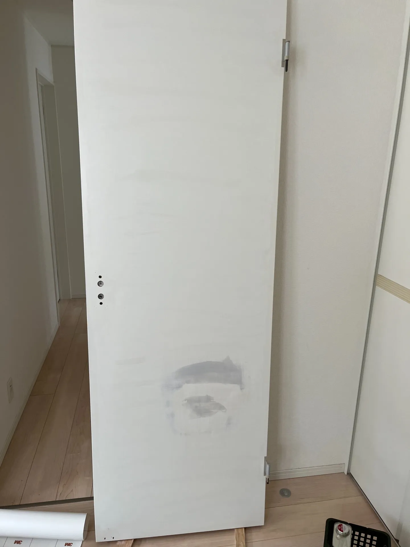 寝室のドアの穴になりますが、引っ越し作業中に物をぶつけてしまったらしく