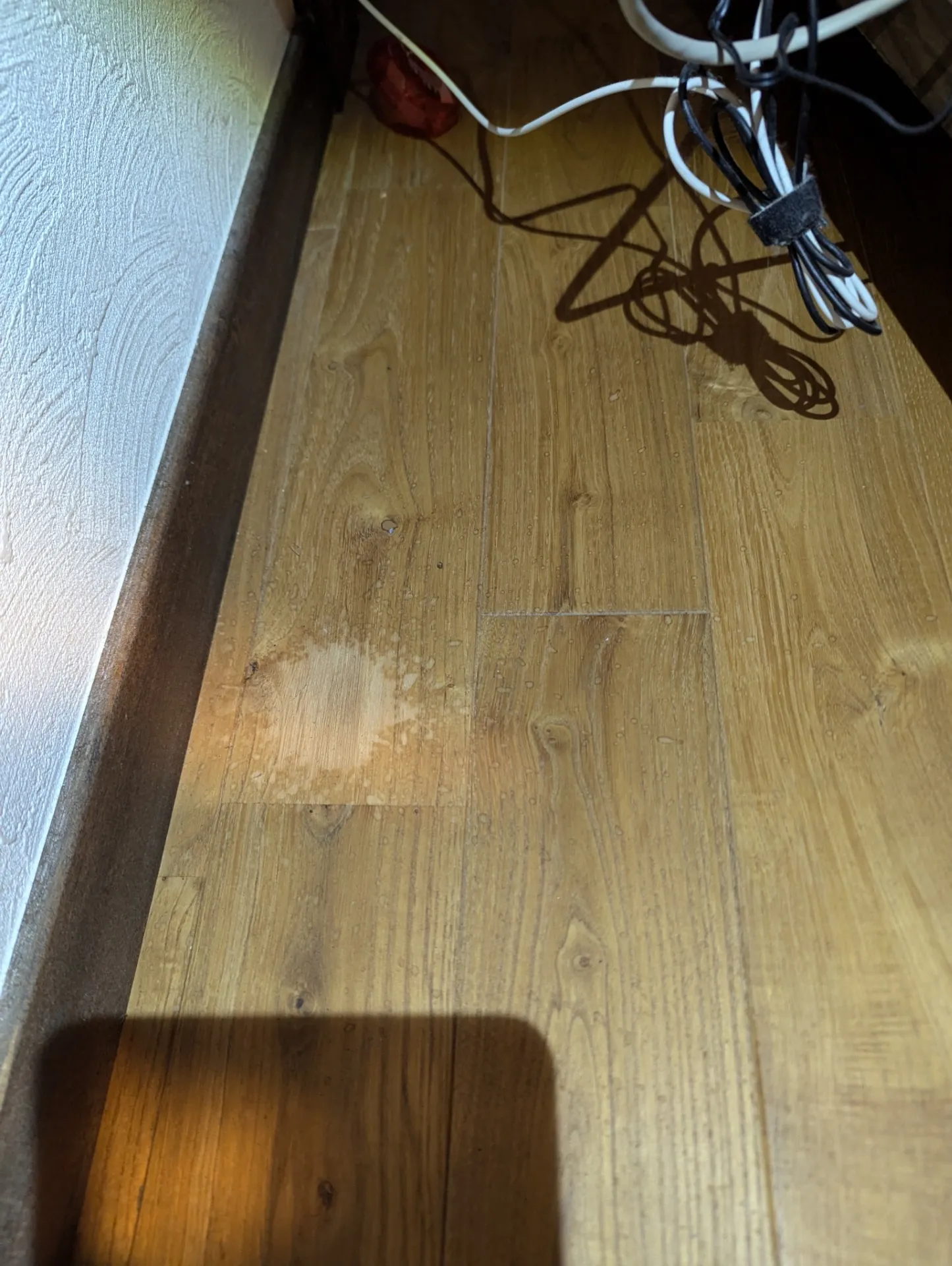 無垢のフローリングに業者様が液体をこぼしてしまい