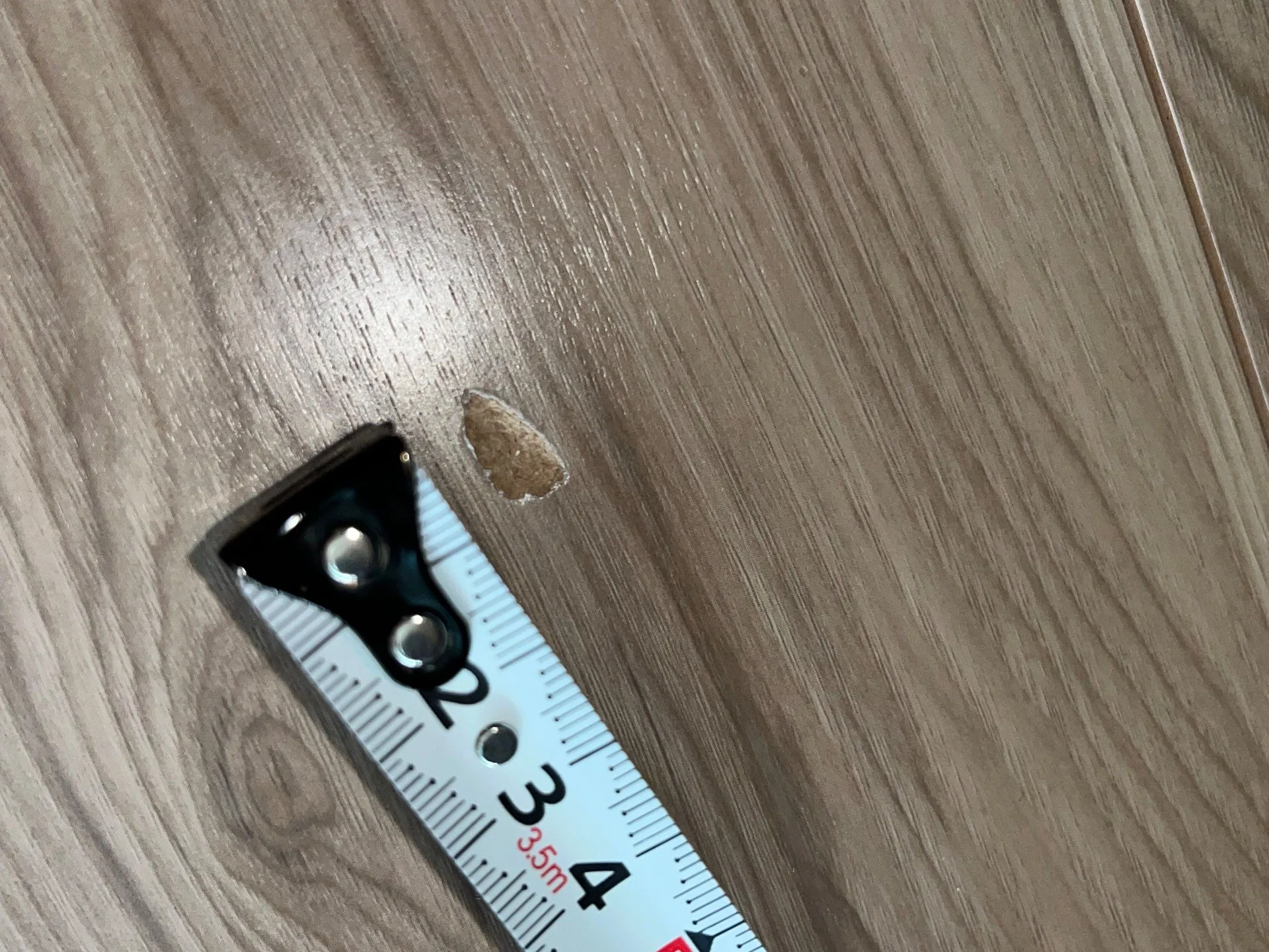 物を落とすと凹むだけではなく、切れて下地のMDFが見えてしまいます。