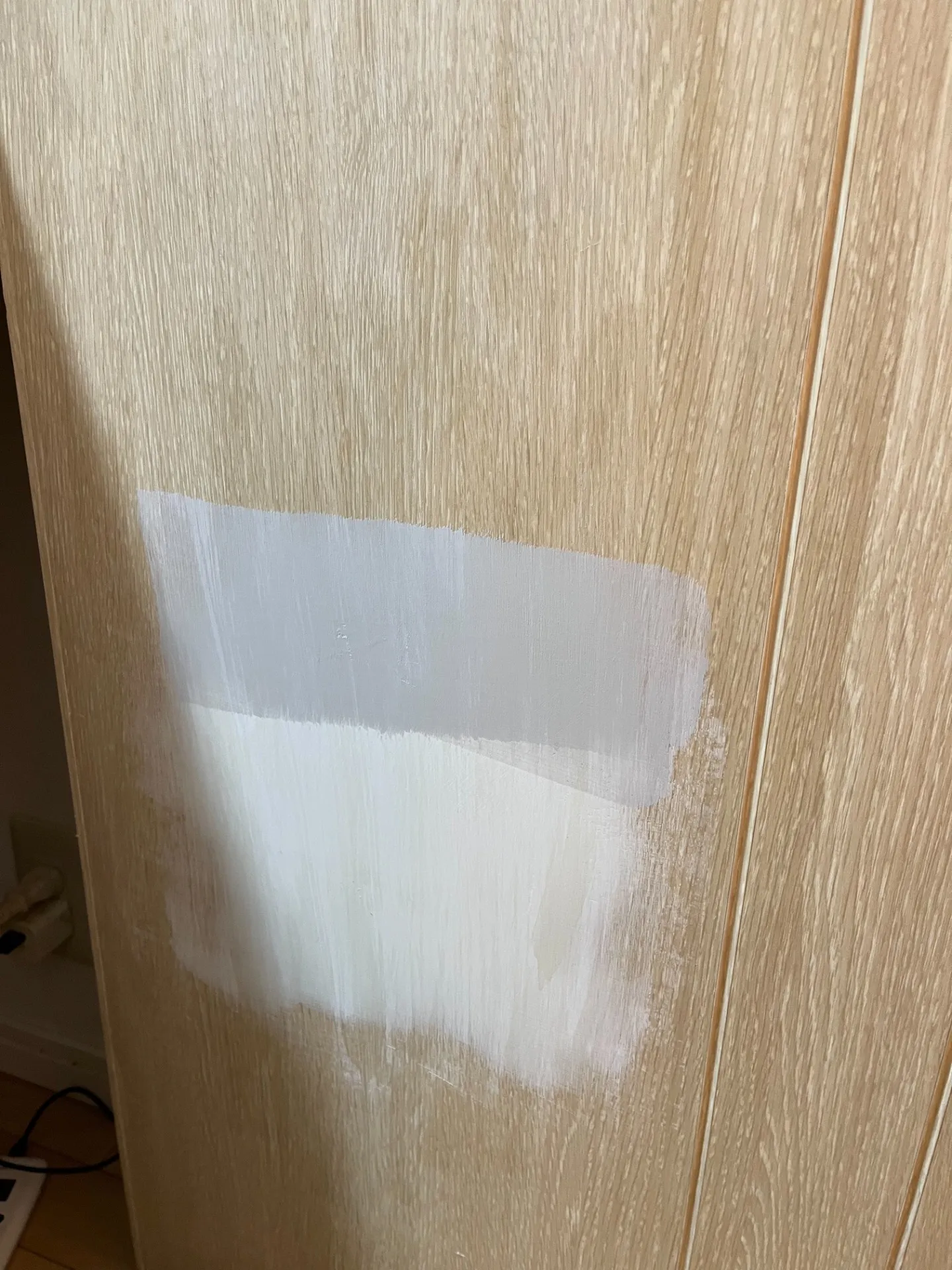 穴の補修後に、ダイノックシートを片面貼って仕上げました。