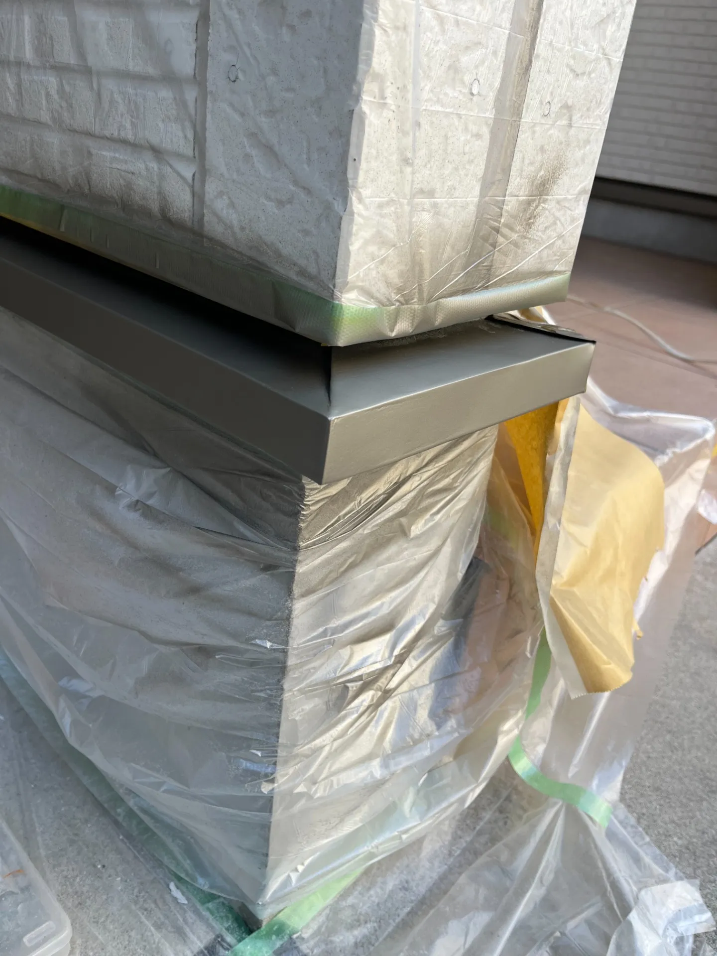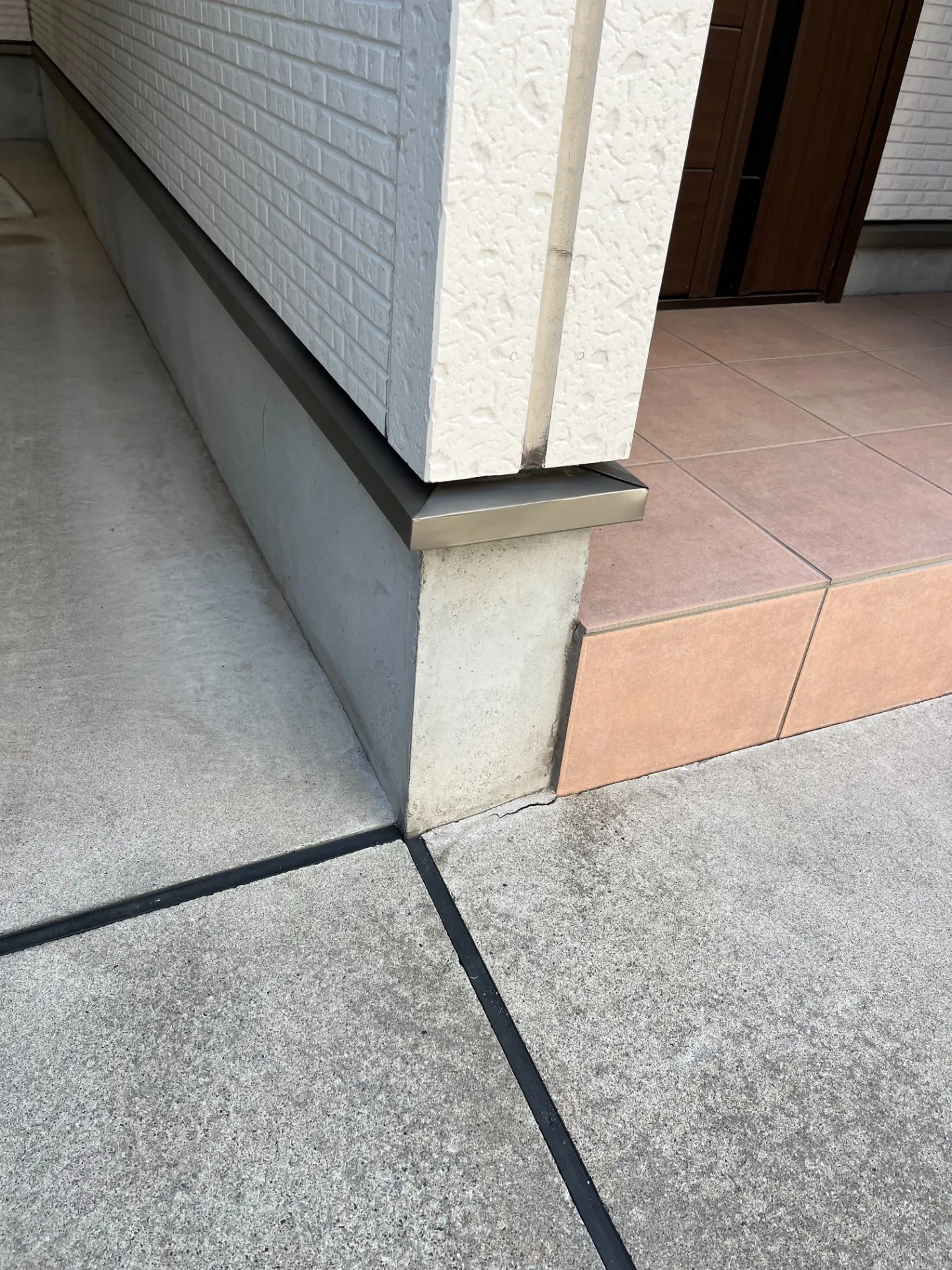 ガレージ横の水切り凹みを補修を行いました。