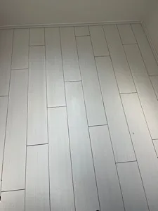 白系フローリングに合わせて、周囲の木目や色味を確認しながら着色します。