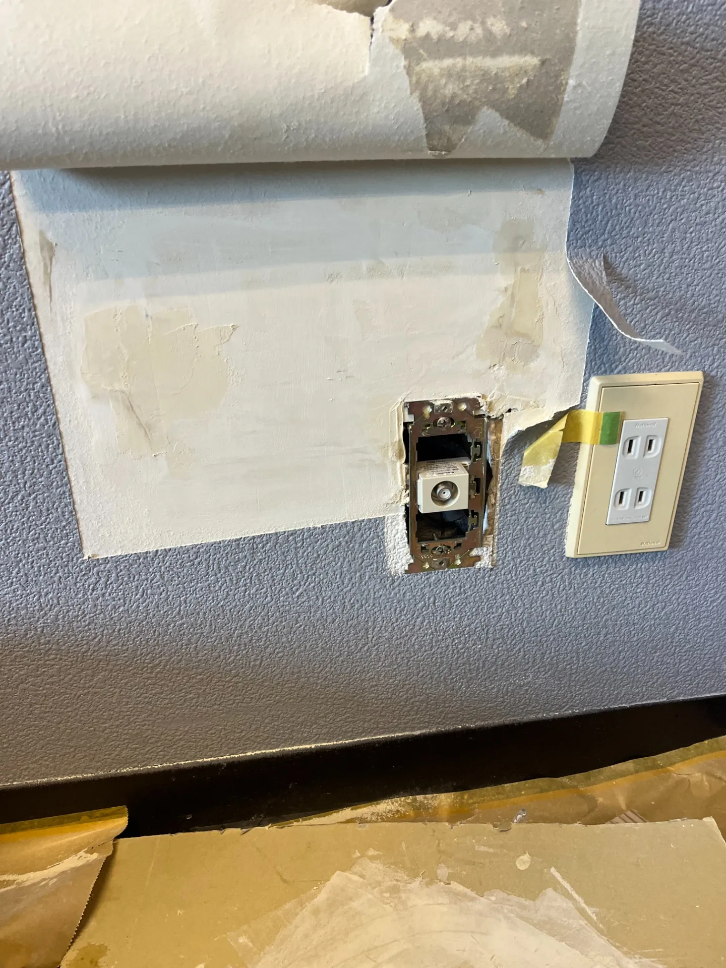 コンセントカバーの破損と壁に穴が空いてしまった状態でした。